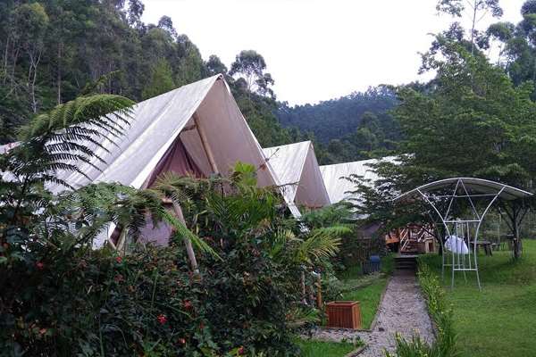 Di Bandung Anda juga bisa mendapatkan beberapa tempat glamour camping, salah satunya adalah Legok Kondang Lodge. Berlokasi di Ciwidey, Bandung Selatan, Legok Kondang Lodge ini memiliki banyak tenda yang terbuat dari kayu.