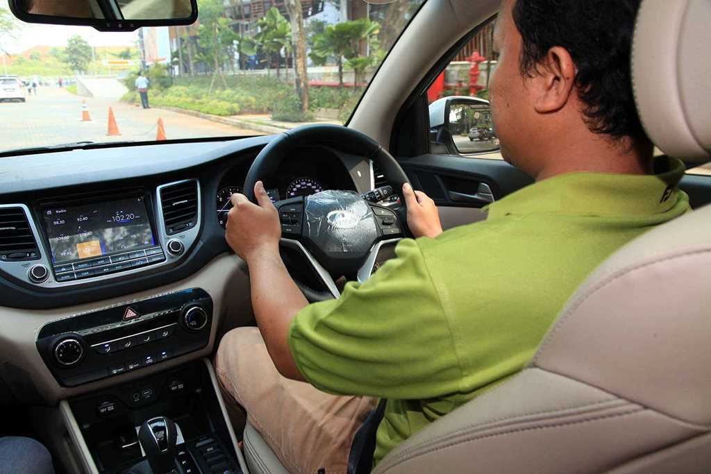 Pertama kali duduk di jok pengemudi, figur dengan tinggi 170 cm dapat mudah mencari posisi ideal. Jok pengemudi bisa diatur ketinggiannya dengan cara memompa manual tuas yang ada di sisi sebelah kanan bangku. Pun begitu mengatur ketinggian lingkar kemudi, fitur tilt steering dan telescopic dapat dioperasikan dengan mudah.