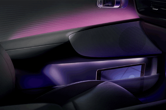 Tombol dari pintu depan dipindahkan ke konsol tengah untuk menyediakan lebih banyak ruang dan penyimpanan / dual-color ambient yang dipasang di trim pintu atas dan bawah dapat dipilih dari 64 warna atau 6 tema warna ganda yang disesuaikan dengan suasana hati Anda.