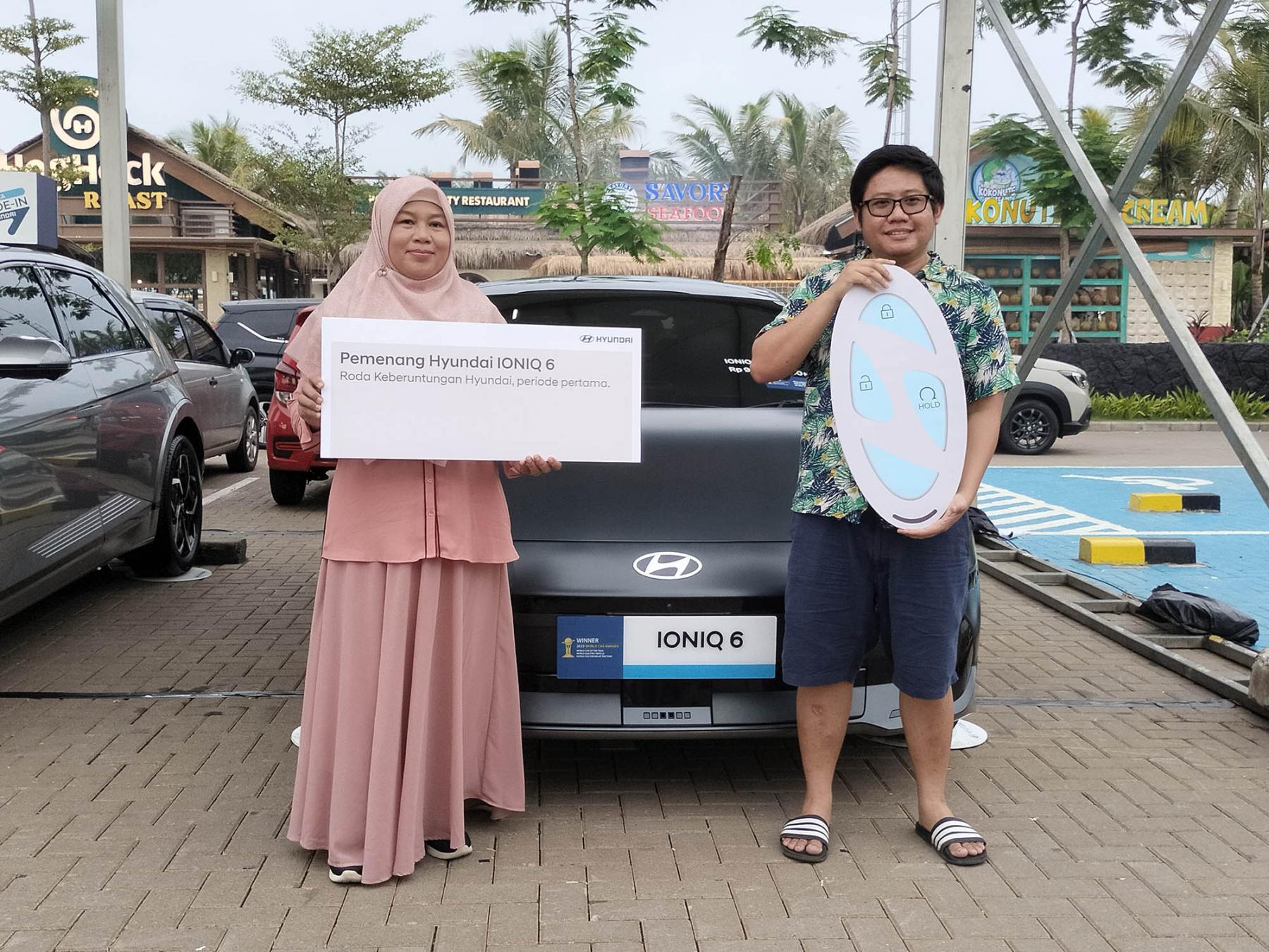 Pada hari Sabtu, 25 Mei 2024, bertempat di Aloha Pasir Putih, Pantai Indah Kapuk, Ahmad Syakib (customer HMI Kelapa Gading) dan Yohanes Hari Kurniawan (customer HMI BSD City) menjadi Hyundai Lovers yang paling beruntung mendapatkan Hyundai Ioniq 6.