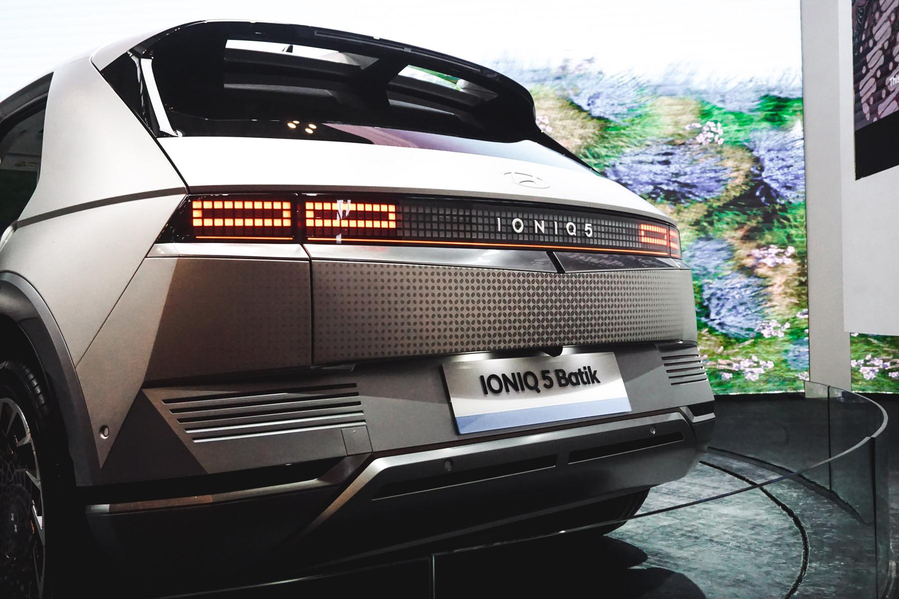 Hyundai Ioniq 5 Batik Edition ini diperkenalkan pada ajang GIIAS 2023. Hyundai Ioniq 5 spesial ini dikujuri oleh motif Batik Kawung di area kap mesin, atap, samping, hingga pintu belakang.