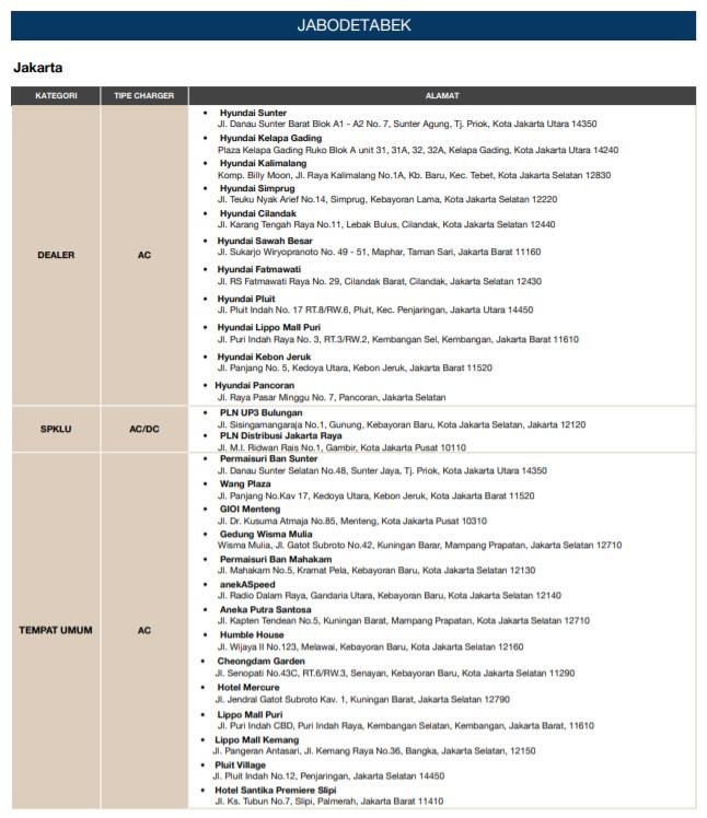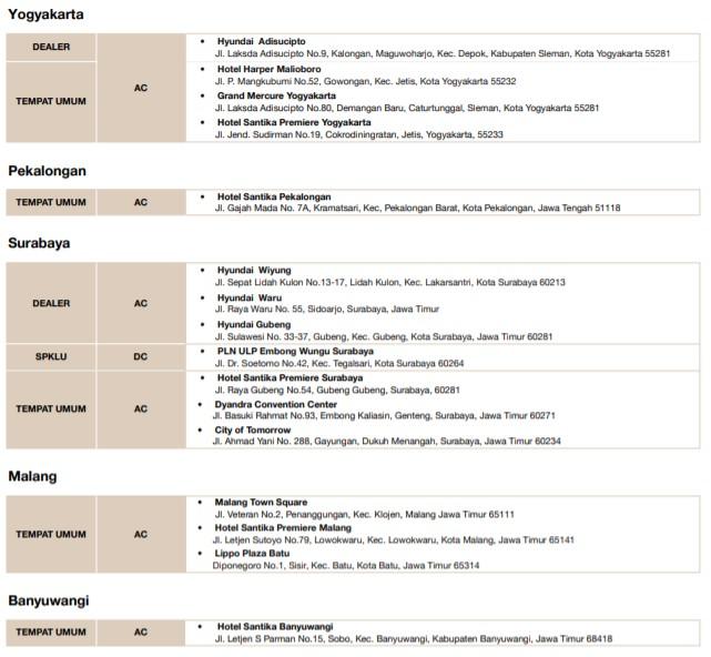 Untungnya, kini fasilitas SPKLU yang bisa digunakan untuk mengisi daya mobil listrik Hyundai Anda yaitu Hyundai Ioniq dan Kona Electric sudah mulai tersedia di beberapa lokasi. Adapun daftar lokasinya adalah.