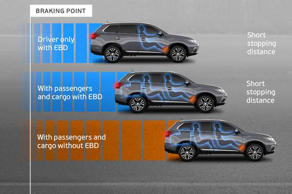 Saat fitur ini dikombinasikan dengan ABS, maka EBD dapat mendistribusikan tekanan rem yang tepat pada tiap roda untuk mengembalikan daya cengkeram pada roda yang slip sehingga kendaraan masih bisa dikontrol lajunya.