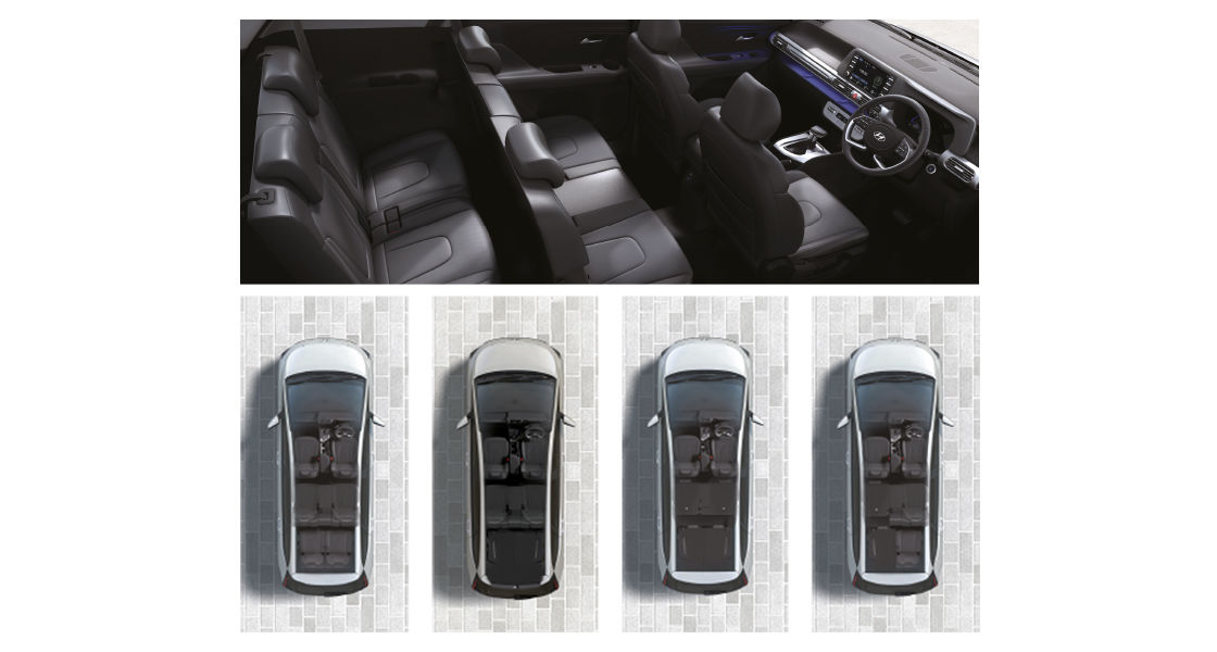 Terdapat lebih dari 30 tempat penyimpanan yang didesain secara ergonomis dan terletak di setiap sisi Hyundai STARGAZER. Mulai dari bagian depan, tengah, samping, hingga belakang, memberikan kepraktisan untuk Anda dan keluarga dalam menyimpan lebih banyak barang di perjalanan.