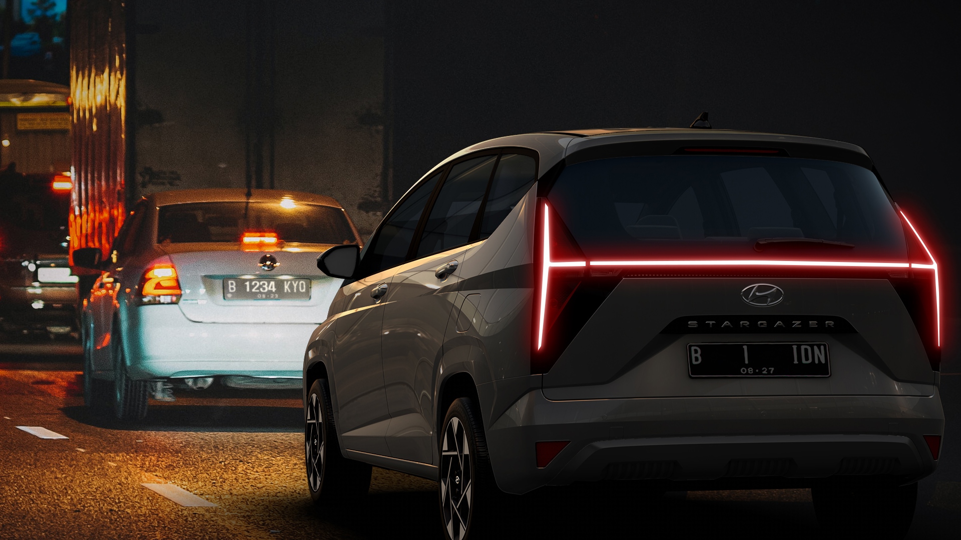 Desain futuristik dan dinamis akan langsung terlihat melalui one curve design yang diciptakan untuk memalingkan setiap pandangan. Dilengkapi dengan Horizon type DRL (Daytime Running Lights) dan H-shape LED Rear Combination Lamp, Hyundai STARGAZER semakin menawan dengan eksterior yang membuat Anda dan keluarga tampil memukau bagai bintang.